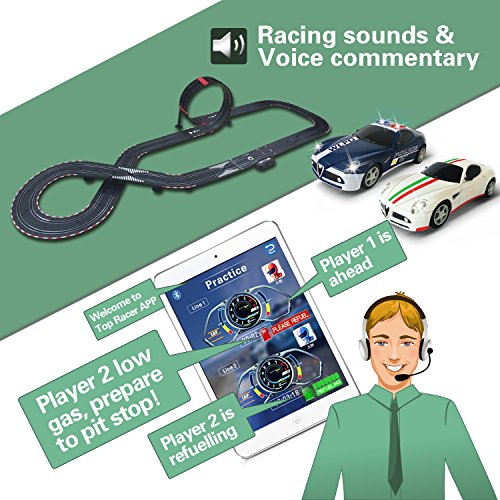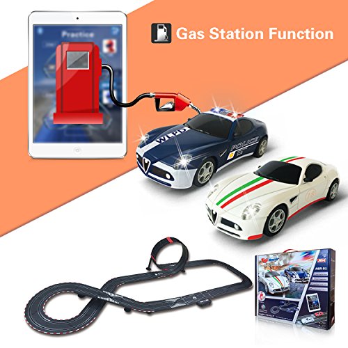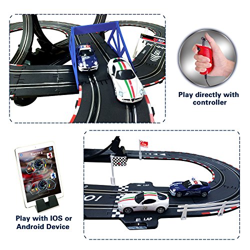 This slot car set is able to connect with smart devices and uses an app to enhance the racing experiences(Requires iOS 9.2 & Android 4.3 or later).