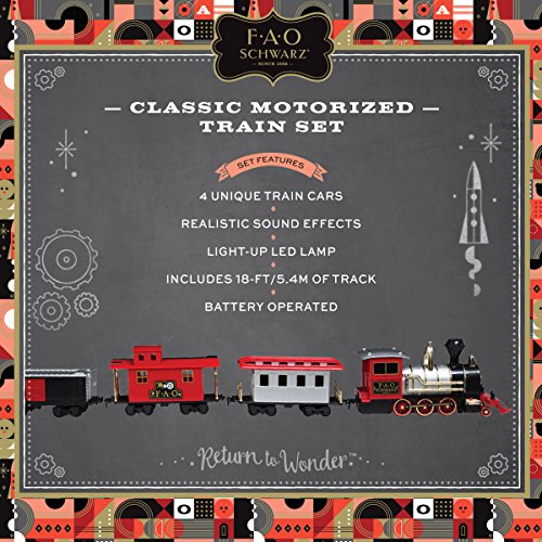 A CLASSIC TOY, RE-IMAGINED FOR 21ST CENTURY CHILDREN Antique toy trains have been a beloved staple among children’s for more than 100 years, and have provided countless little boy or girls with hours upon hours of great fun. Taking that fun to the next level, the FAO Schwarz model train set also features exciting light-up LED lights and realistic train and railroad sounds. You’ll wish you were a kid again!