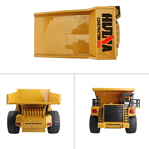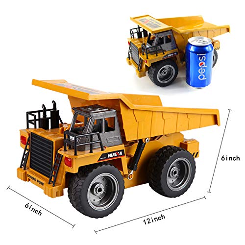 fisca RC Truck 6 Ch 2.4G Alloy Remote Control Dump Truck 4 Wheel Driver Mine Construction Vehicle Toy Machine Model with LED Light
