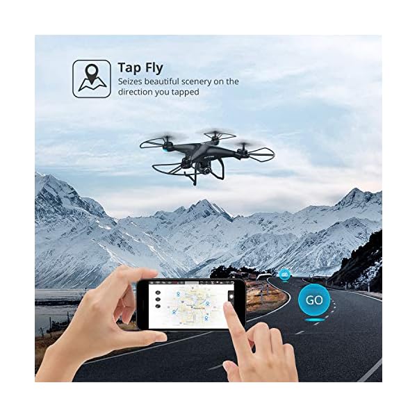 Smart and Fun: Follow Me Mode frees your hands, while drone automatically follows wherever you move. Great for selfie! With Tap-fly, you can design the flying path.