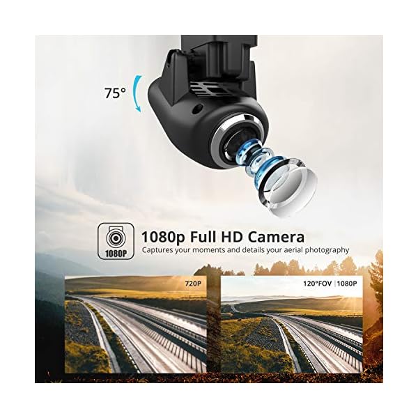Better Pictures and Steadier FPV Views: 1080p Full HD camera with 120° FOV and 75° adjustable wide angle helps to capture clearly photos and more stable videos. (SD Card Included)