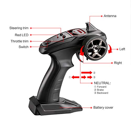 ? Amazingly Fast — 1:16 Scale big size and full proportional super-fast monster truck are special designed for tough environments and any rugged roads. The max speed is up to 36km/h, which makes the car race faster than others. Strong powerful built-in motor is to provide you realistic and impressive racing and off-road game experience.
