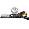 This train is highly detailed with retro styling on its Berkshire steam locomotive, blue and red passenger coach, and observation car with a “disappearing” hobo for an extra surprise. Fixed knuckle couplers, a working headlight, and realistic setup and shutdown sequences complete the authentic look and feel of a powerful G-gauge locomotive.