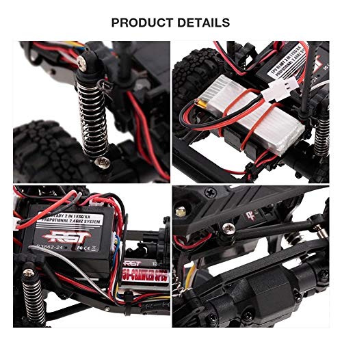 Longshow Toy RC Vehicles, RGT 1/24 2.4G 4WD 15KM/H RC Rock Crawler Rechargeable Remote Control Truck Off Road RC Car for Kids