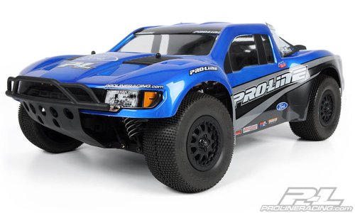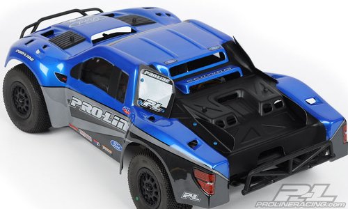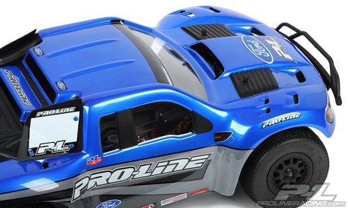 This is a Pro-Line Flo-Tek Ford F-150 Raptor SVT Clear Body for Short Course Trucks. Are you a die-hard Ford fan who needs the benefit of Flo-Tek technology to make that huge triple without blowing over? Now you can have the newest in race body styling technology and show off your love for Ford with Pro-Line’s new Flo-Tek Ford F-150 Raptor SVT body for short course trucks. This body features ultra-low, sleek body lines and distinctive Ford details blended with Flo-Tek technology that will make your SC truck look good going around the track. All Ford fans need Pro-Line’s new Flo-Tek Ford F-150 Raptor SVT Clear Body!!! Don’t forget to submit your finished Pro-Line Ford F-150 Raptor SVT body to Reader’s Rides when you are done. Who knows, you could get your ride posted on the blog and you could even win a prize! Ford Motor Company Trademarks and Trade Dress used under license to Pro-Line. www.fordmotorcompany.com Slash is a registered trademarks of Traxxas L.P. Please note: All bodies are sold in crystal clear Lexan and are painted for advertising purposes only.