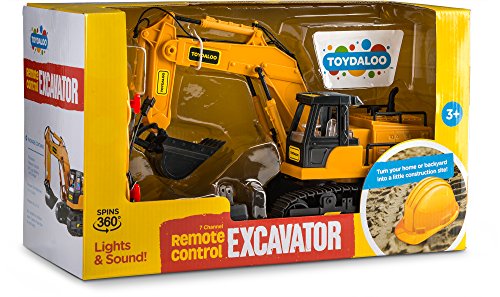 Remote Control RC Excavator Toy Truck with Flashing Lights and SFX - Includes Transmitter and Battery Charger| Battery Operated RC Toy Construction Vehicle for Kids with Cool Sound Effects | Lighting