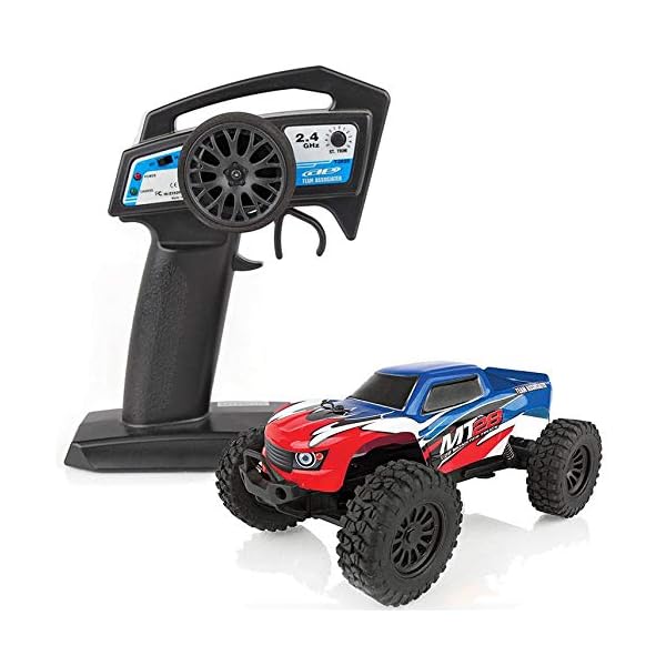 Everything included!small in scale but monstrously fun! This no-nonsense pint-sized monster truck looks great with its eye-catching graphics, and drives smooth Thanks to its powerful electric motor and capable drivetrain.The included 2.4 GHz transmitter gives you complete control through and over obstacles with ease! With the increased ground clearance and rubber tires, the MT28 handles like no other vehicle in its category.When your off-road thrills exhaust The vehicle’s integrated battery, The convenient built-in transmitter charger makes it easy to get back to full power in less than an hour. A built-in rechargeable battery and 4 AAs are already included in the box! Just charge and drive!
