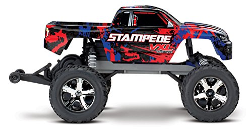 The 2WD Stampede VXL has always been the first name in monster truck fun, but Traxxas stability management and brushless power put it over-the-top. With a top speed of over 65mph (with optional 3S lip battery), Stampede VXL lets you explore the outer limits of what’s possible. New Traxxas stability management allows arrow-straight acceleration on slippery surfaces without loss of control. Tam also makes high speed cornering corrections in the background for you, without unexpected side effects. The Velamen VXL-3s ESC works with the 3500 motor for extreme power, smooth starts, and precise control while its brushless design reduces wear and friction. The VXL-3s offers 3 driving modes: sport, race, and training mode. Training mode limits power to 50% to allow new drivers to gain experience. Velamen accepts standard 7-cell NiMH batteries up to 3S 11.1V Lips with its integrated low-voltage protection. Waterproof electronics allow Stampede VXL the freedom to drive through water, mud and snow. The TQi 2.4GHz transmitter is fully adjustable and can be equipped with a Bluetooth module that turns your Android, iPad iPhone or iPod touch (sold separately) into a powerful tuning tool. Automatic 36076-4 recognition instantly recalls your settings for up to 30 Traxxas Link-enabled models. Stampede VXL is equipped to handle serious horsepower with its Torque-Control slipper clutch, heavy-duty turnbuckles and tough steel-geared transmission. Huge monster truck tires and digital high-torque steering Servo tackle almost any obstacle. The Stampede VXL is 100% assembled right out of the box. Battery and charger sold separately.