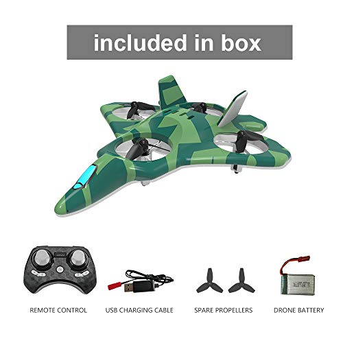 Both Fly and Hover Hybrid Models: 4 bladed propellers with 6-Axis gyroscope technology and altitude hold mode is better thrust and energy efficiency, this RC F22 plane can fly and hover for your unique flying experiences.