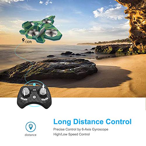 One Key 360 Degree Flip Stunt: Press a single button on Remote Control, this Fighter Jet drone does a 360 degree flip when flying.